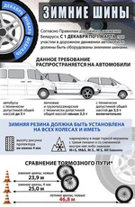 Пункт 2071 Правил дорожного движения (далее – ПДД) гласит: «При участии в дорожном движении с 1 декабря по 1 марта автомобили с технически допустимой общей массой до 3,5 тонны включительно, легковые и грузопассажирские автомобили с технически допустимой общей массой свыше 3,5 тонны, а также автобусы с технически допустимой общей массой до 5 тонн должны быть оборудованы зимними шинами. Зимние шины устанавливаются на всех колесах транспортного средства и должны соответствовать требованиям части второй пункта 25 приложения 4 ПДД.